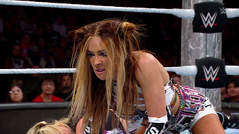 It would have been a quick transition to Go to Kick if not for Pure Fusion Collective intruding at ringside. The distraction allowed Morgan to slip off Kai’s shoulders. Kai bounced back with a scorpion kick. Attempted interference by Zoey Stark led to Kai kicking her followed by a PK from the apron to Shayna Baszler. Morgan charged at Kai as she re-entered the ring for obLIVion only for Kai to outwit her, rolling her up for one. Morgan retaliated with a codebreaker, sending Kai to the corner where Liv struck her with a charging knee strike.