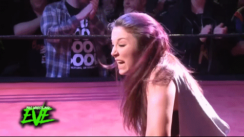 Newell responded with a bit more aggression, even teasing a signature move at one point and instead going for a chinlock to irritate the crowd. Such an attitude wasn't completely unfamiliar to her, having taken on the role of a heel elsewhere on the UK scene around that time. Unable to get a pin via a fallaway slam with a bridge, Nixon stood on top of Angel and choked her with both her feet. Angel fired back with some offense including a top rope elbow drop. Nixon got up and the two traded strikes, ending with Nixon superkicking Angel to the canvas.
