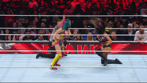 IYO pointed out that Aliyah was either brave or stupid to show up on RAW is Damage Control without her muscle. Trish Stratus decided to come to her fellow Torontonian's side, choosing to baby her instead of letting Aliyah learn a hard lesson of wrestling life. Aliyah goaded Bayley -- who was trying to focus solely on the six woman tag team match at Clash at the Castle -- into accepting a match against her. Being the leader she is Bayley accepted without hesitation.