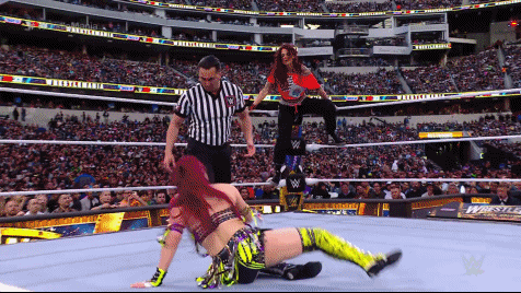 IYO and Bayley got Trish to the floor. Becky and Lita made the save. In a moment of sheer insanity that had Dakota's "little friends" thinking they would make a comeback, Lita and Becky assisted Trish in bringing Our Captain off the top rope with a Stratusphere to the floor onto Bayley and SKY. Back in the ring, Kai got worked over but fought through the pain like Our Captain always does because she's the fucking Captain. When opportunity presented itself, Bayley dragged Dakota to their corner and tagged herself in.