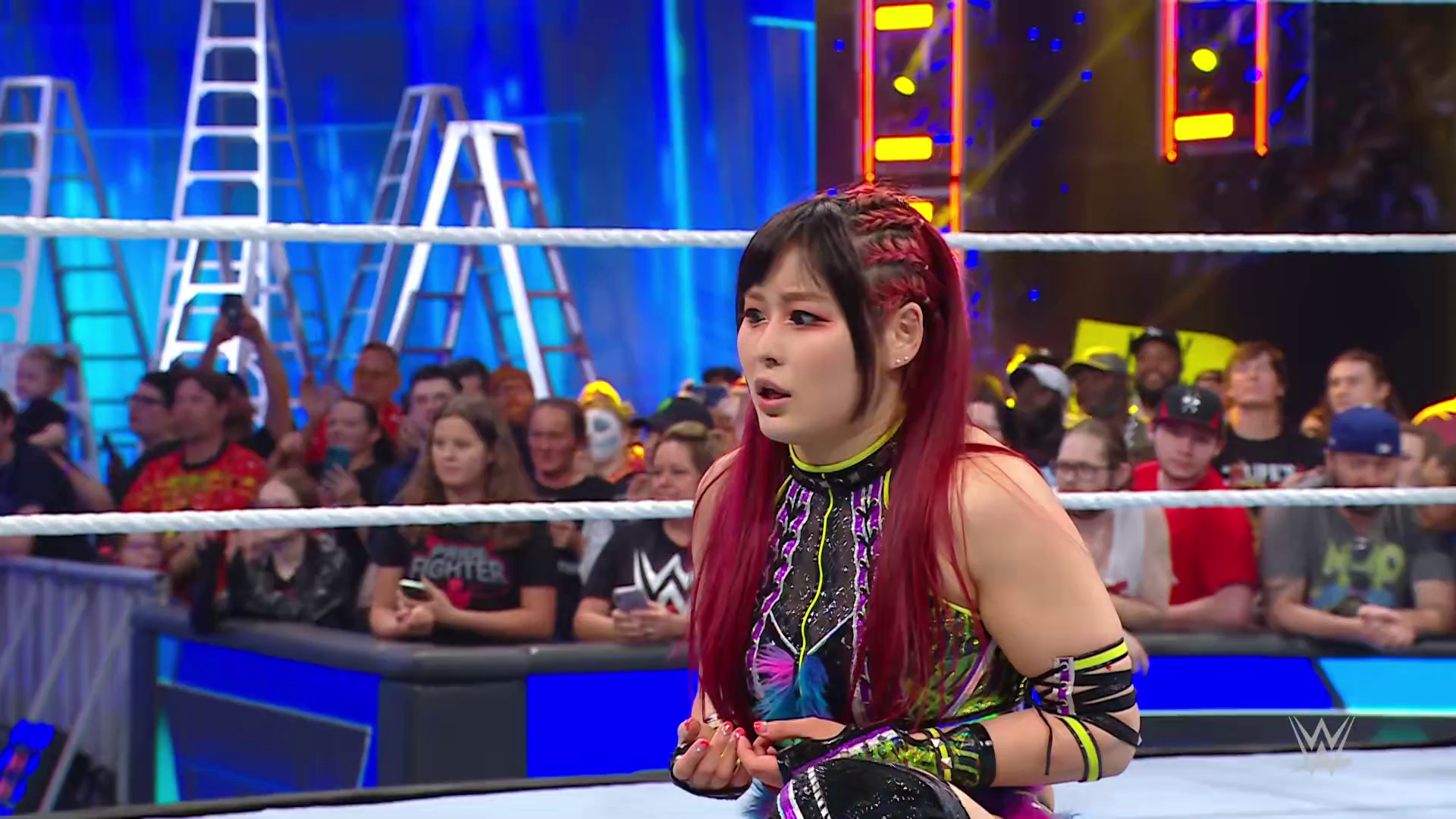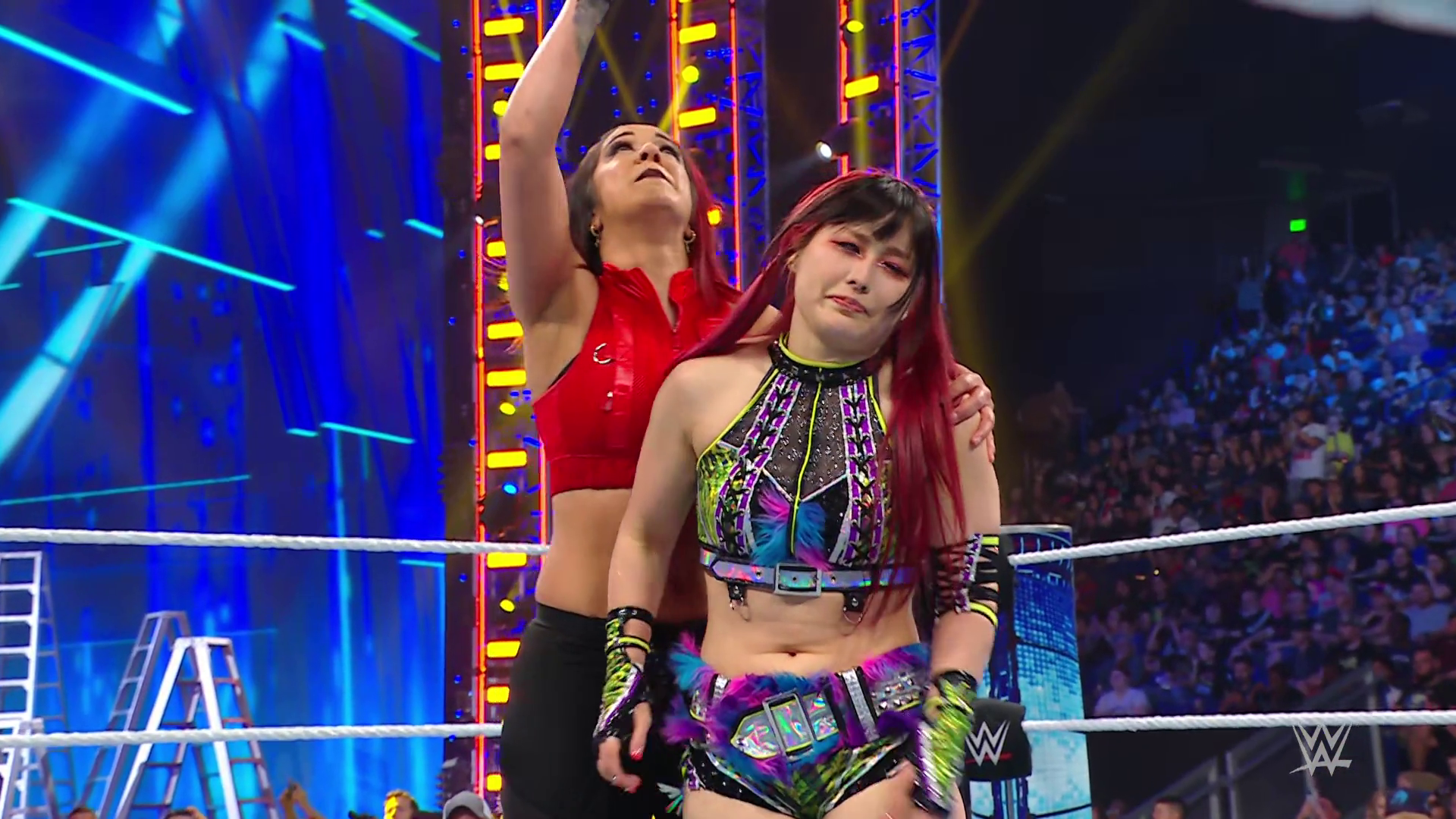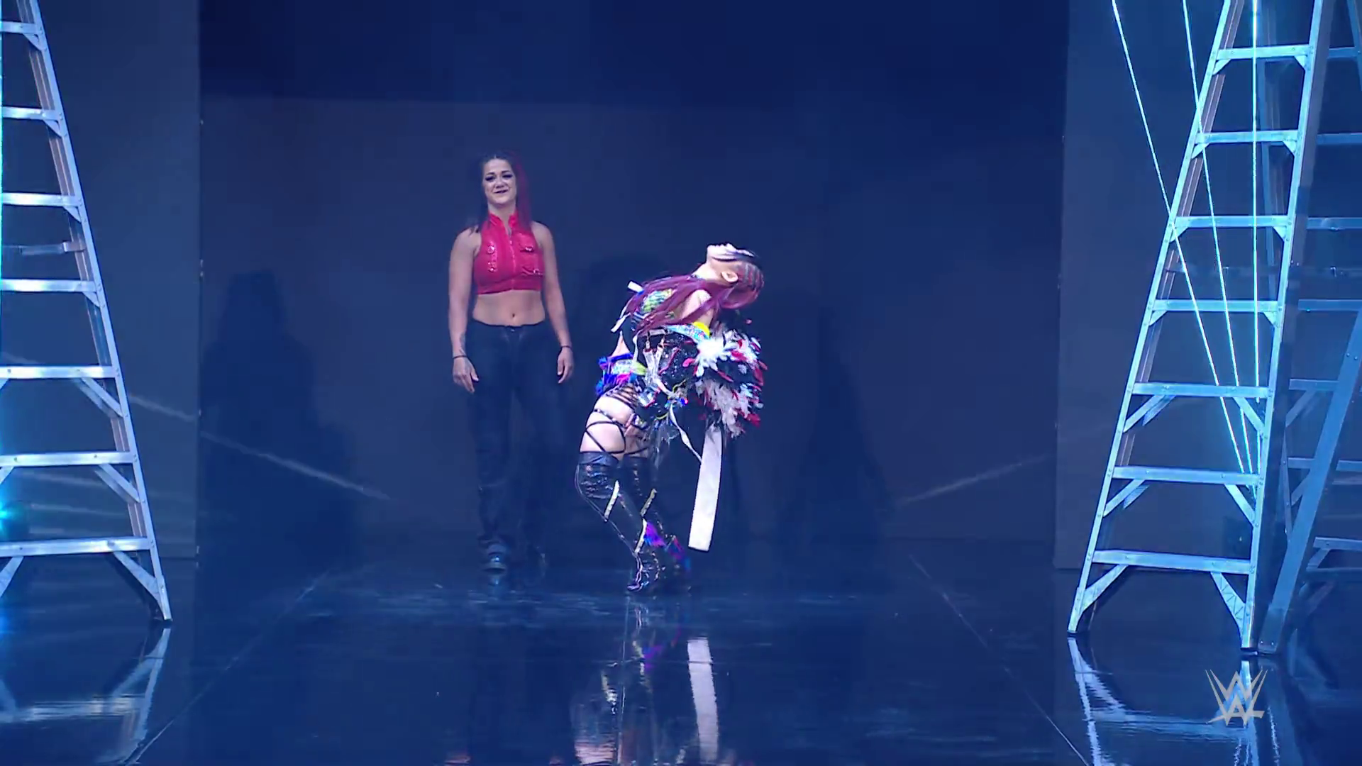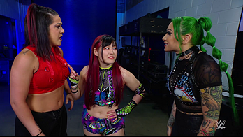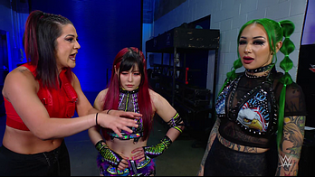 Vega struck SKY down with the 619 and stacked her up for the pinfall victory. Bayley was apologetic to IYO but that didn't calm SKY's anger. Moments later backstage, IYO shouted at Bayley to stop getting involved in her matches. Bayley told IYO she needs to accept all the help she can get right now. IYO questioned if Bayley trusts her. Bayley insisted she does but the ladder match will be every woman for herself so to let her do what she has to do right now. This heated discussion was intruded upon by Shotzi.