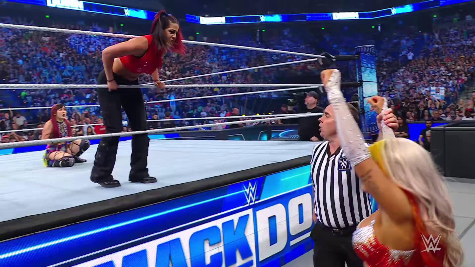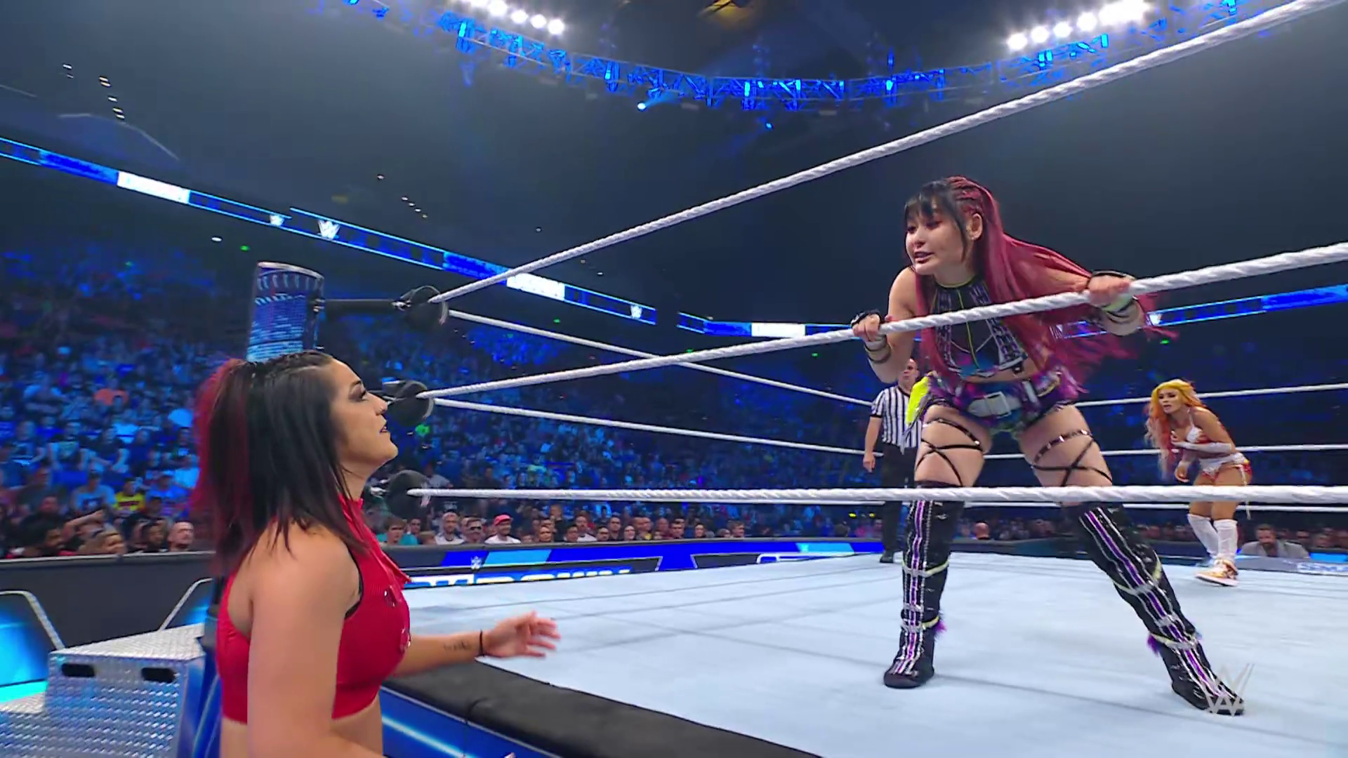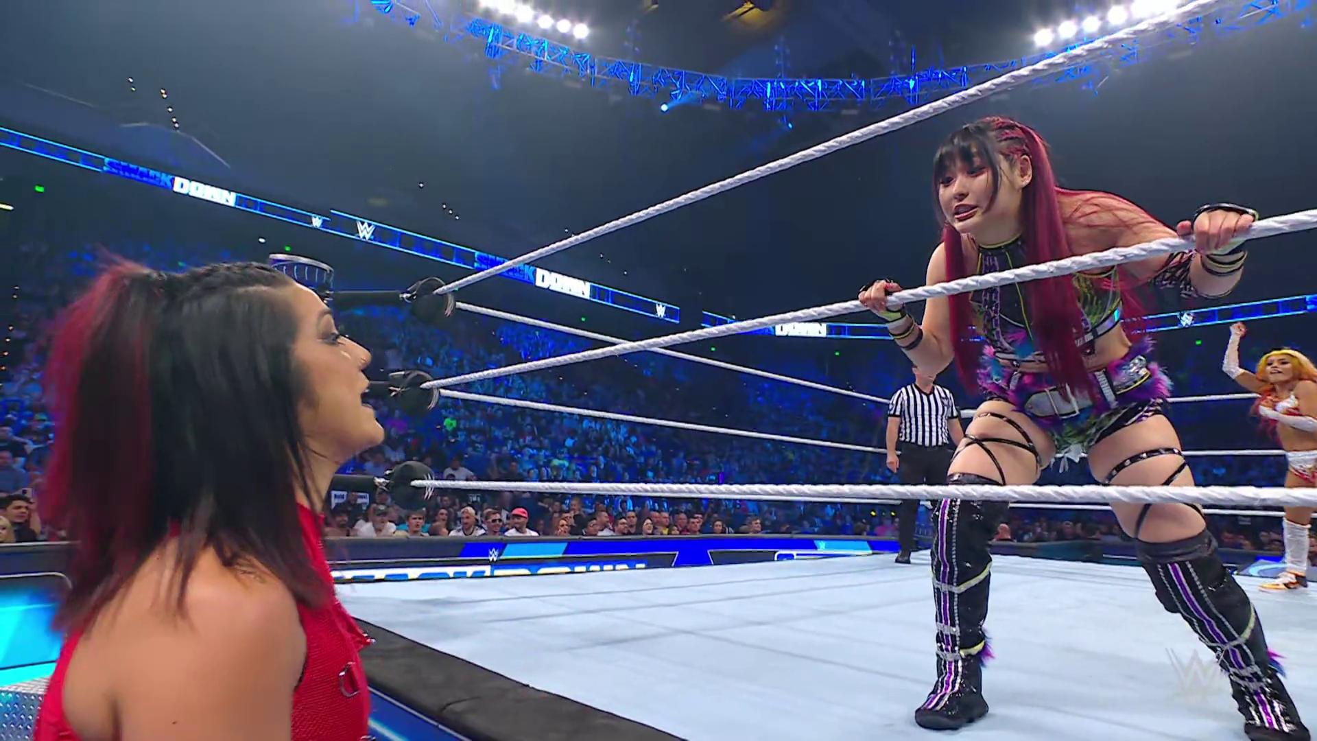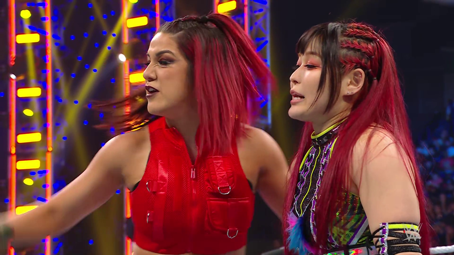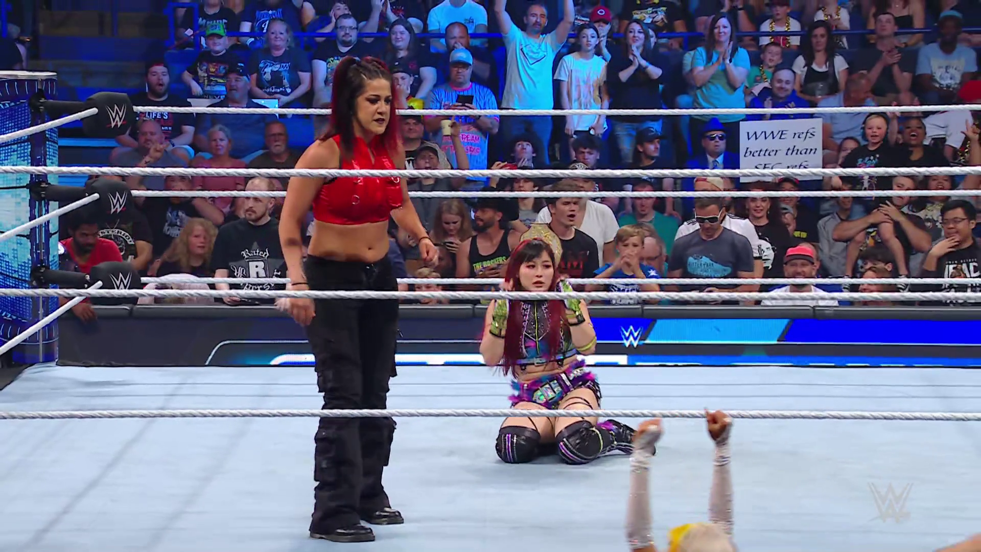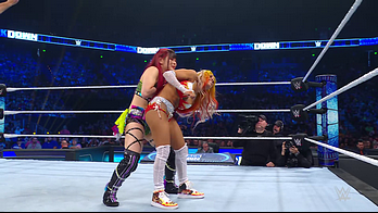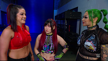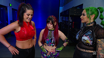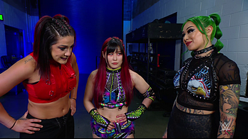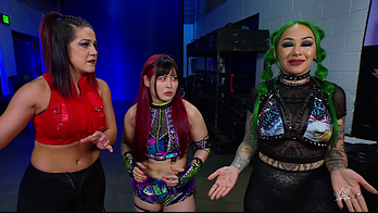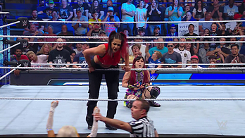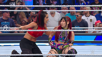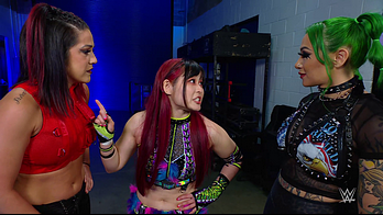 On the June 16th 2023 episode of SmackDown, IYO faced Zelina. Bayley got up on the apron to provide a distraction to assist SKY. IYO came up behind Vega to roll her up for a pin only for Zelina to counter with a waistlock. SKY nearly collided with Bayley. The referee was distracted admonishing Bayley, missing SKY countering Vega's waistlock into a roll-up. Bayley shouted at the referee to return his attention to the match, pointing at the pin. The referee was too late and Vega kicked out. IYO turned her gaze to Bayley, shouting aggressively at her.