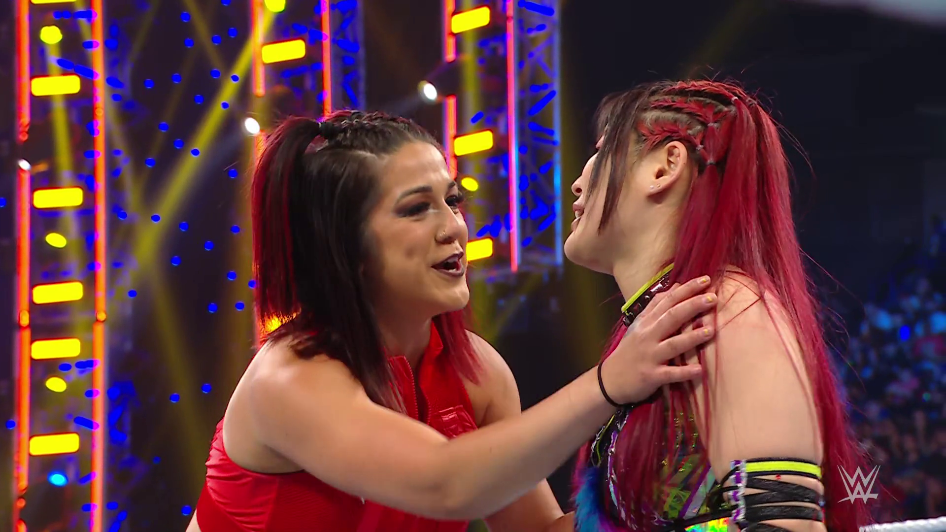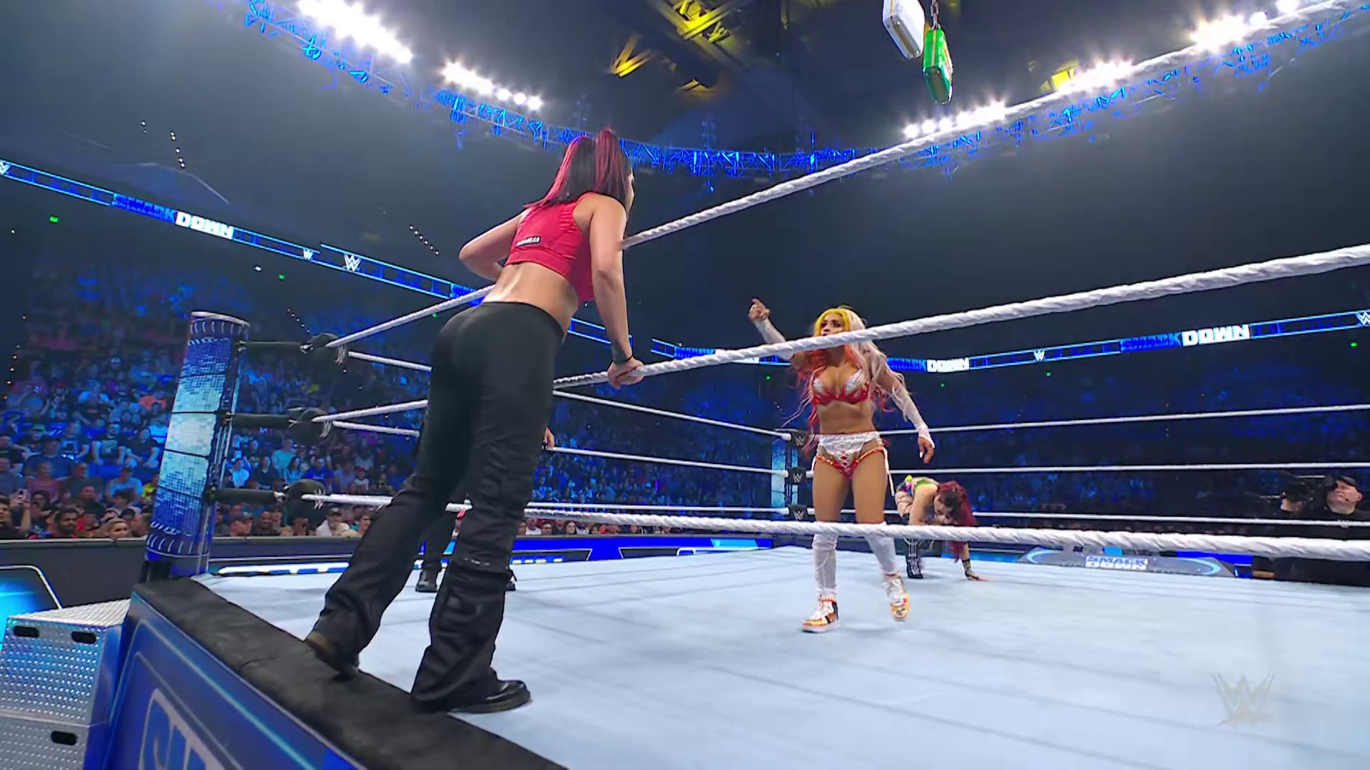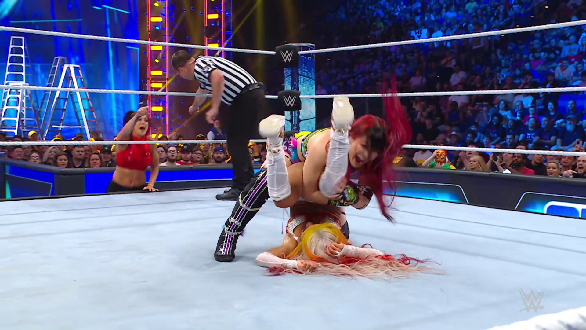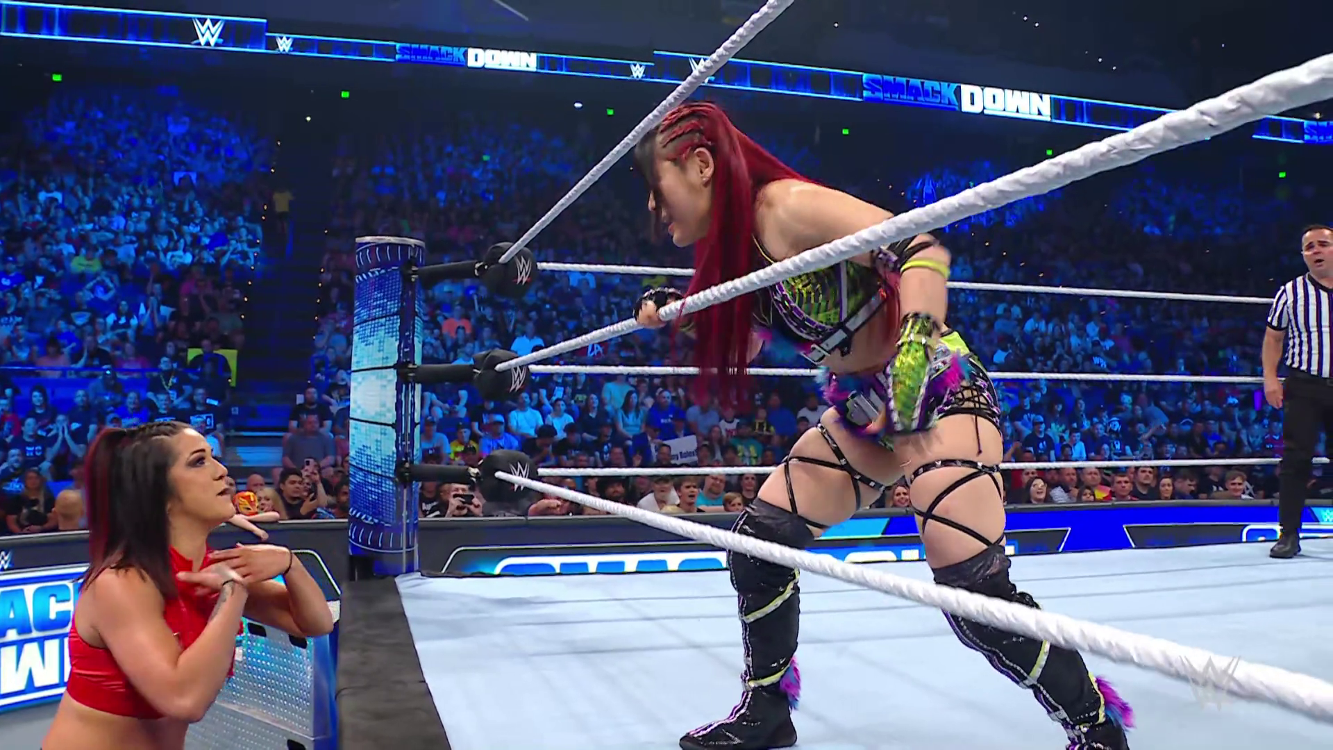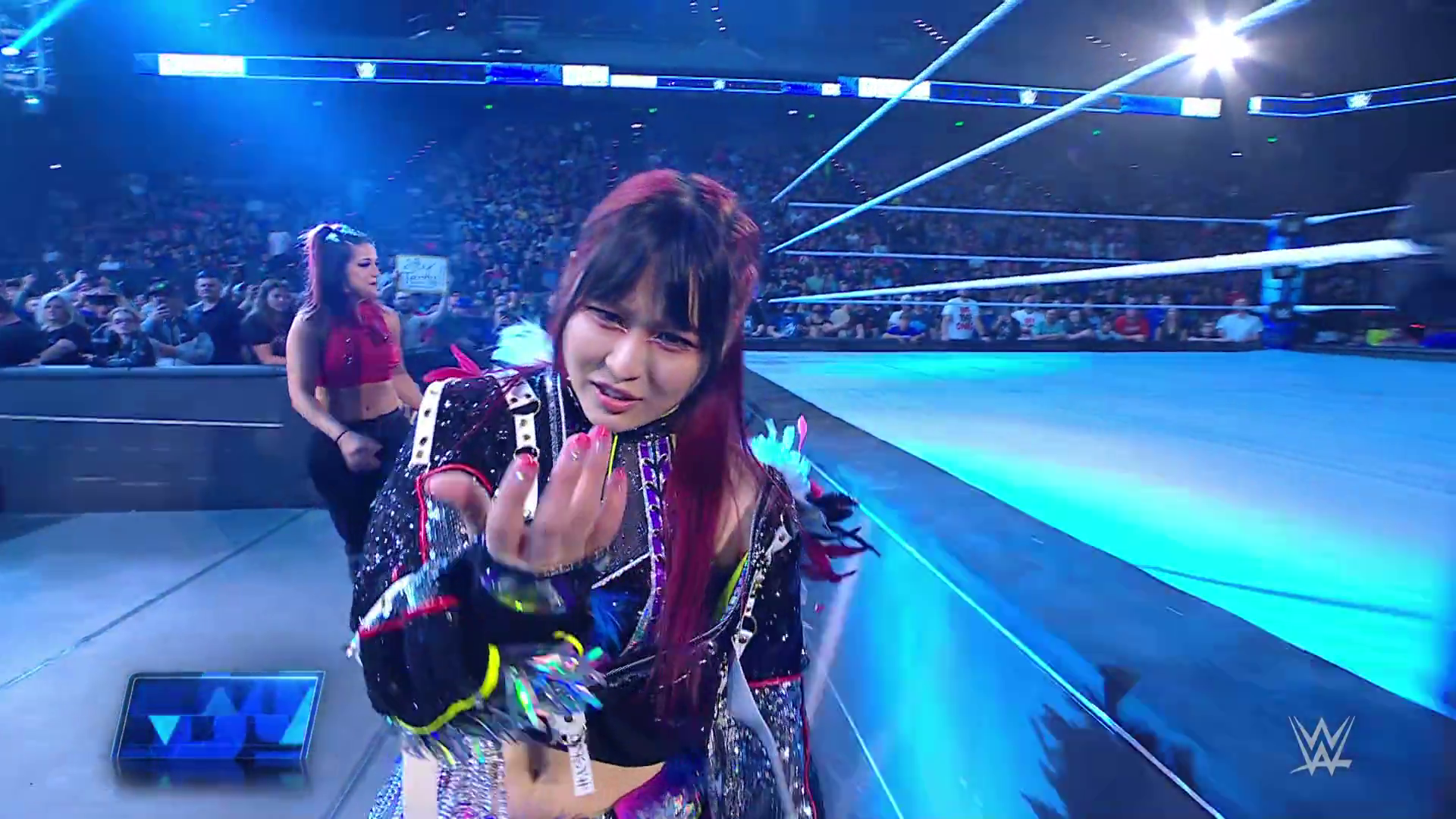 On the June 16th 2023 episode of SmackDown, IYO faced Zelina. Bayley got up on the apron to provide a distraction to assist SKY. IYO came up behind Vega to roll her up for a pin only for Zelina to counter with a waistlock. SKY nearly collided with Bayley. The referee was distracted admonishing Bayley, missing SKY countering Vega's waistlock into a roll-up. Bayley shouted at the referee to return his attention to the match, pointing at the pin. The referee was too late and Vega kicked out. IYO turned her gaze to Bayley, shouting aggressively at her.