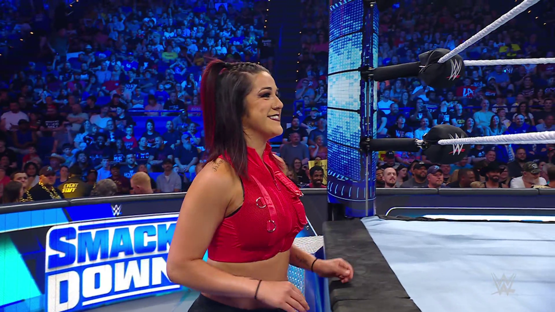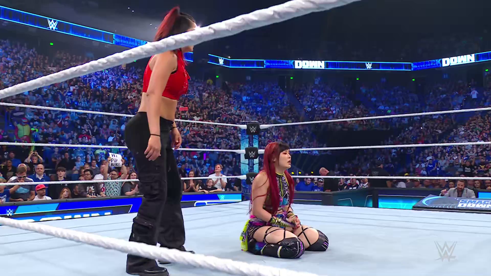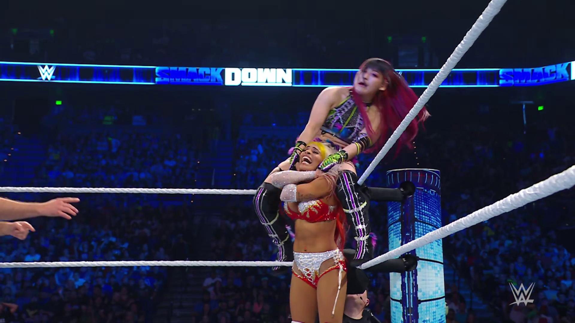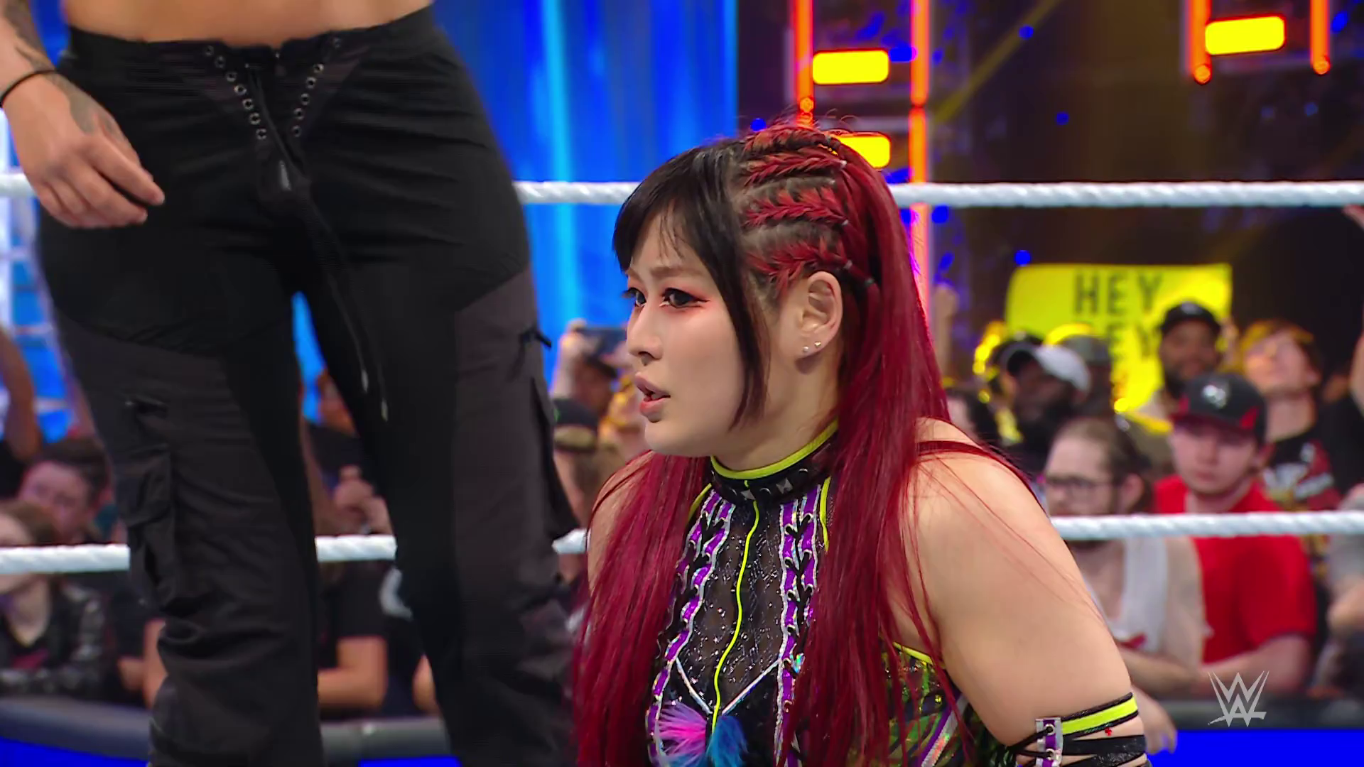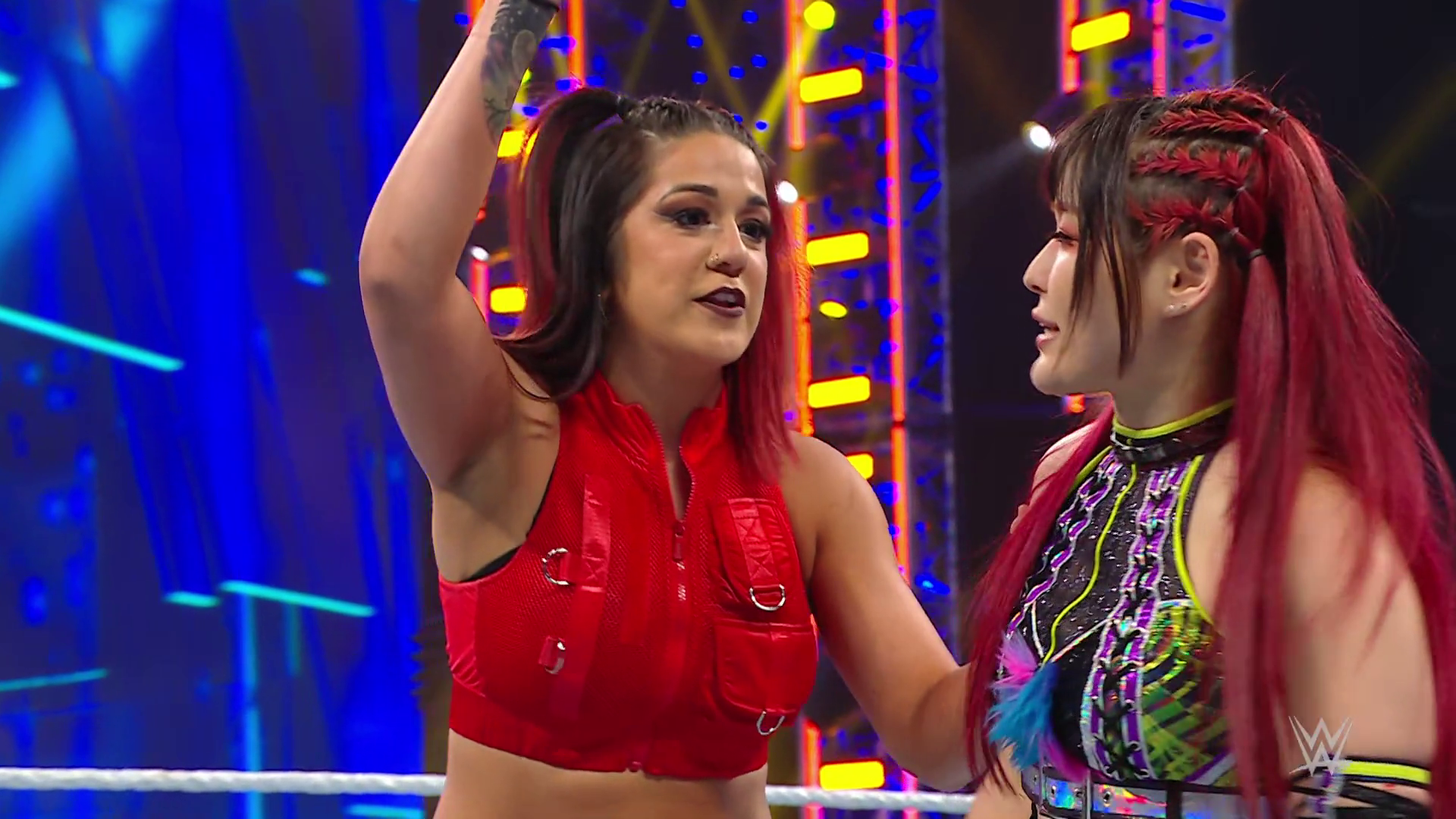 On the June 16th 2023 episode of SmackDown, IYO faced Zelina. Bayley got up on the apron to provide a distraction to assist SKY. IYO came up behind Vega to roll her up for a pin only for Zelina to counter with a waistlock. SKY nearly collided with Bayley. The referee was distracted admonishing Bayley, missing SKY countering Vega's waistlock into a roll-up. Bayley shouted at the referee to return his attention to the match, pointing at the pin. The referee was too late and Vega kicked out. IYO turned her gaze to Bayley, shouting aggressively at her.