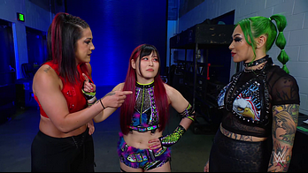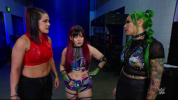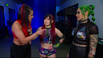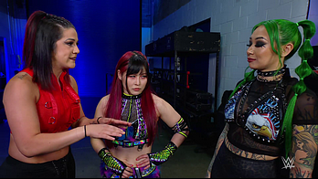 Shotzi was still mad that Bayley cost her the qualifying match against IYO. The Role Model told her she doesn't belong in Money in the Bank because she isn't on Damage CTRL's level. Bayley laughed at Shotzi challenging her to put her Money in the Bank match spot on the line. IYO told Shotzi that Bayley accepted. Shotzi left to get the match made official. Bayley slapped SKY across the shoulder, asking her why she did that. IYO mischievously smiled, responding she was just trying to help. Bayley had that miffed but knows she walked right into that reaction.