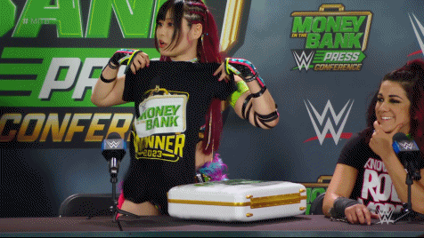 IYO SKY, Dakota Kai and Bayley are The Ladies in the Bank. The briefcase with the contract for a women's championship match anytime, anyplace, anywhere belongs to Damage CTRL. July 1st 2023. The O2 in London, England. Money in the Bank. The Women's Money in the Bank Ladder Match. SKY and Bayley wearing their Damage CTRL arm bands worked as a unit, facing adversaries of the recent past at every turn. Becky Lynch. Trish Stratus. Zelina Vega. And last but not least SKY's former tag team partner Zoey Stark whom IYO still doesn't like.