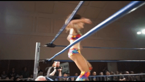 Evie got to her feet and charged at Kellyanne who viciously tossed her into the corner. The impact of the toss hung Evie upside down and helpless in the turnbuckles. Kellyanne came at Evie full steam intent on hitting her with one final cannonball. Evie mustered up every little bit of fight she had left in her heart to pull herself to the top rope and evade. Kellyanne crashed into the bottom turnbuckle but didn't stay down for more than a moment.