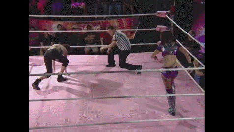 Ring announcer, the late great Daphne, introduced Evie at 5'5 inches tall but quickly corrected herself -- 165 centimeters because she's from Auckland, New Zealand. Evie placed her hand above her head and stood tall and proud, revealing she's actually a skyscraper who towers wrestling giants past and present. Don't let that invisible petite mirage cloak she wears fool you.
